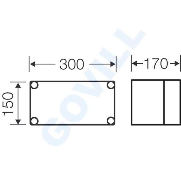 MÉRETEK Magasság: 150 mm Szélesség: 300 mm Mélység: 170 mm oldal