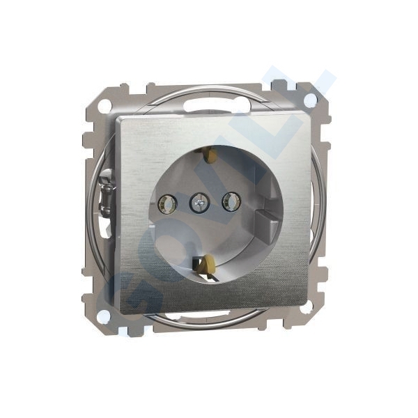 ÚJ SEDNA 2P+F csatlakozóaljzat, rugós bekötés, 16A, szálcsiszolt ezüst